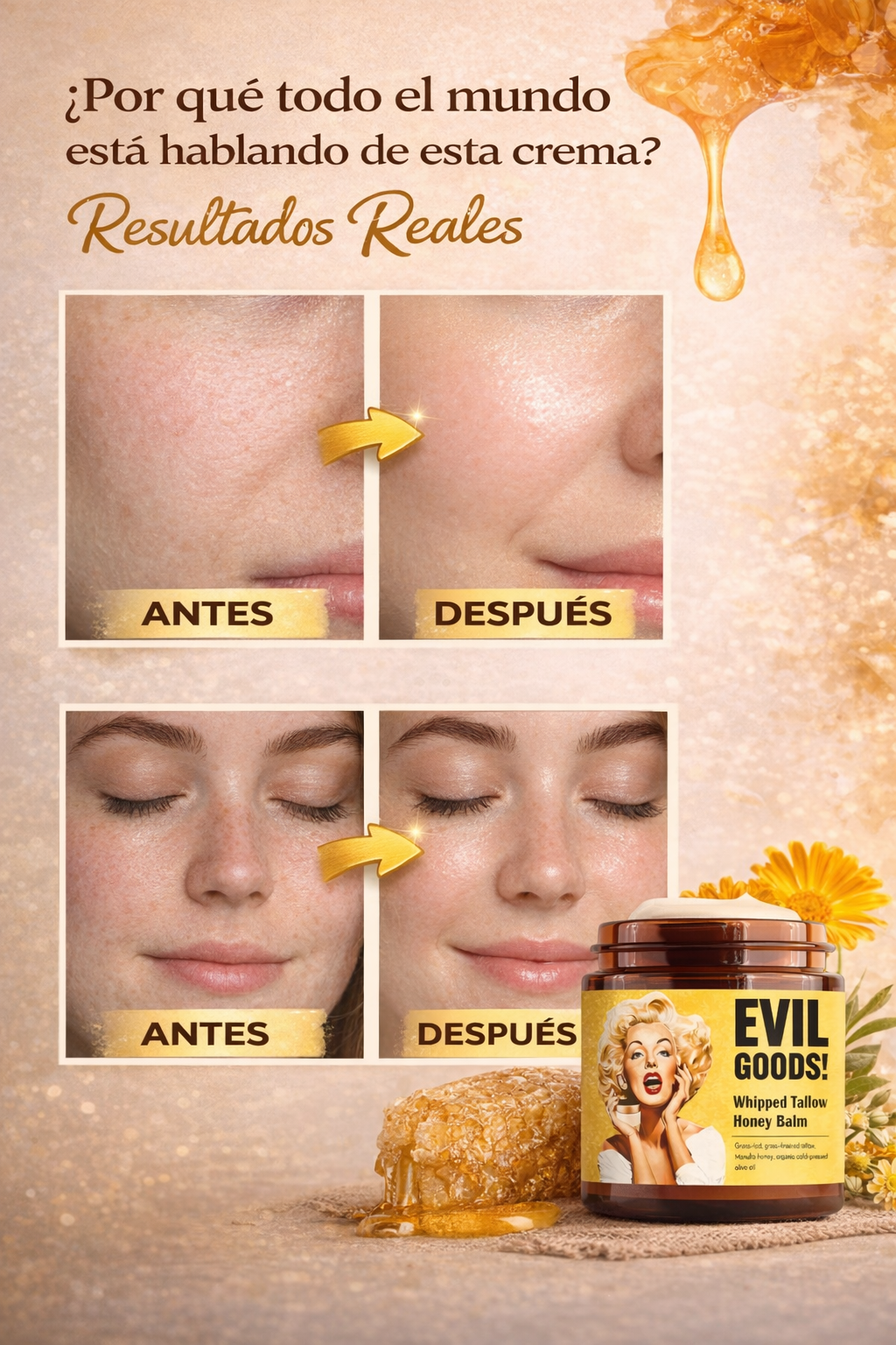 En un mercado lleno de cremas con ingredientes sintéticos y fórmulas largas que nadie entiende, nuestro Whipped Tallow Honey Balm vuelve a lo esencial: nutrición real con ingredientes que tu piel reconoce y absorbe naturalmente.